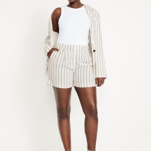 Extra High-Waisted Linen-Blend Taylor Trouser Shorts — 5-inch inseam