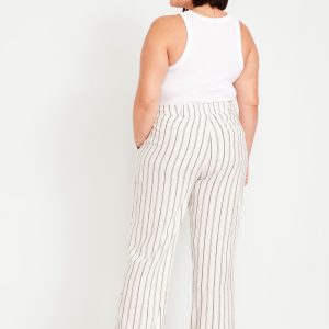 Extra High-Waisted Linen-Blend Taylor Wide-Leg Trouser Pants: Tailored pleats. Loose fit. Don’t do 9-5 (or 5-9) without them.partially-elasticized waistband, hook-and-bar closure, hip pockets, functional back welt pocket, striped print, wide leg, #683376