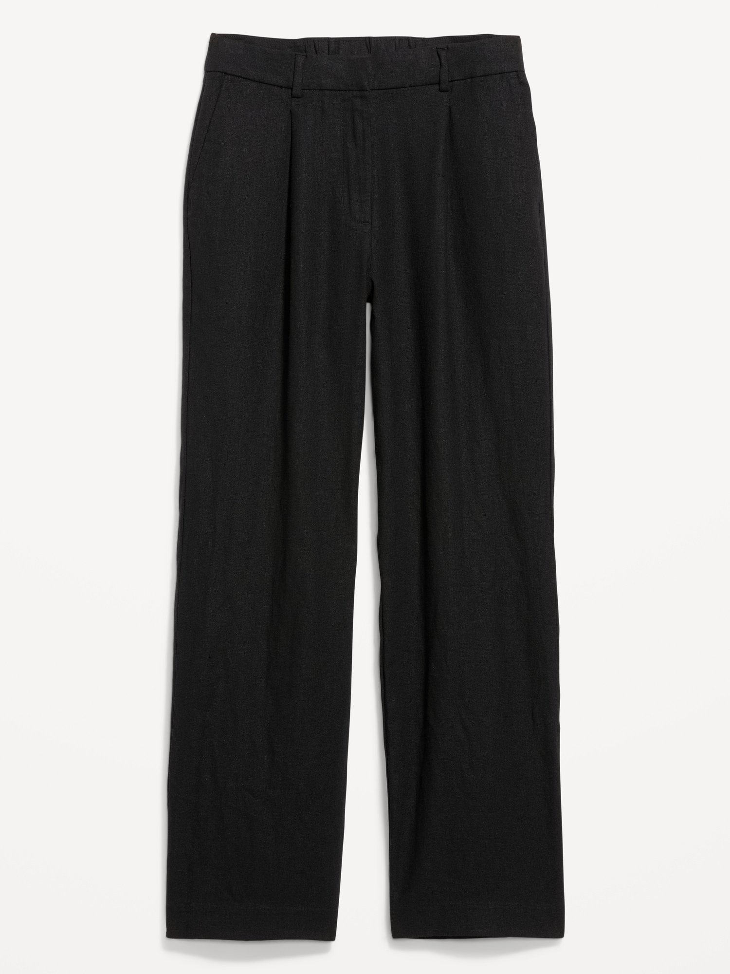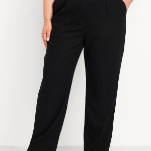 Extra High-Waisted Linen-Blend Taylor Wide-Leg Trouser Pants: Tailored pleats. Loose fit. Don’t do 9-5 (or 5-9) without them.partially-elasticized waistband, hook-and-bar closure, hip pockets, functional back welt pocket, striped print, wide leg, #683376