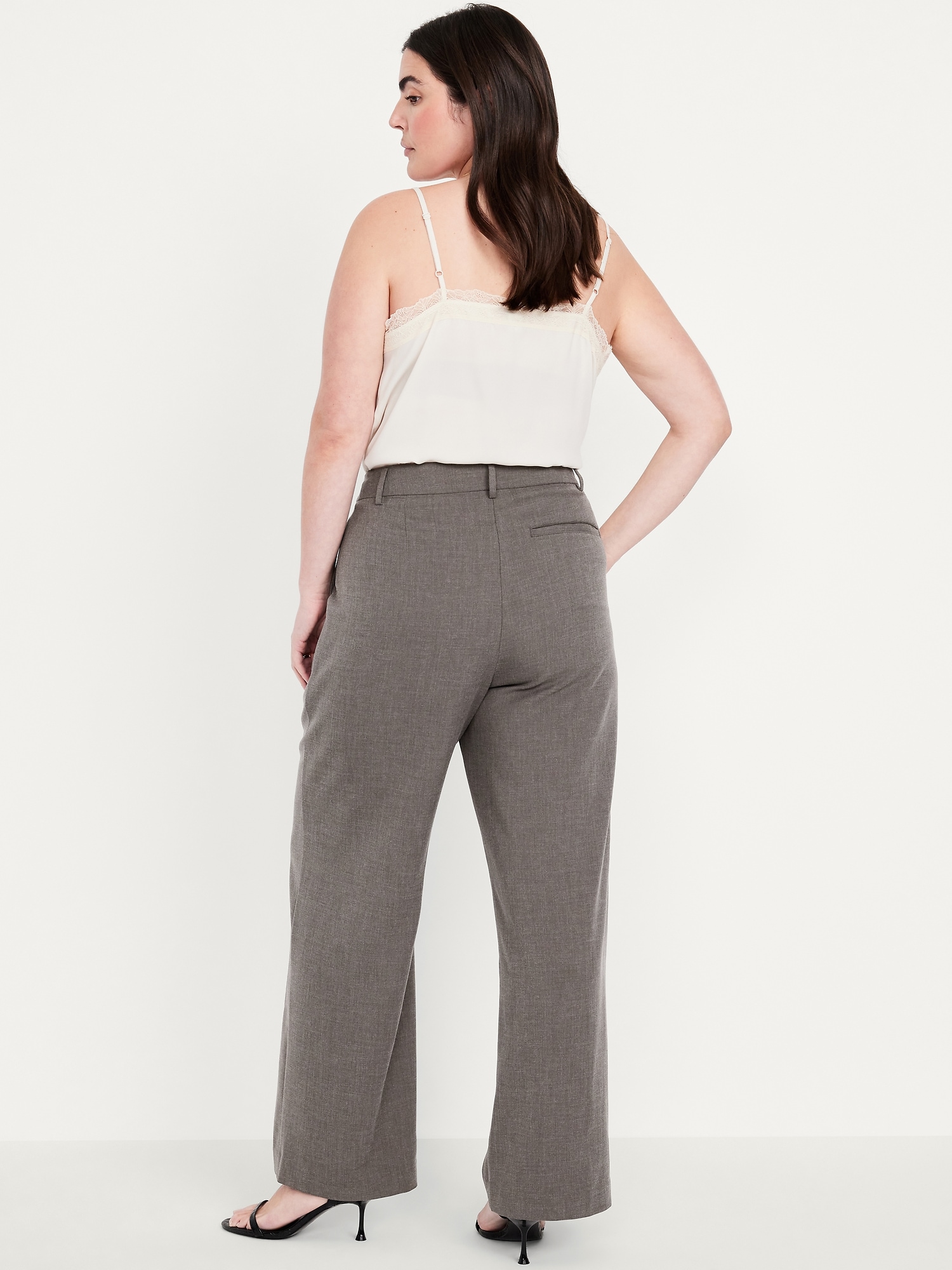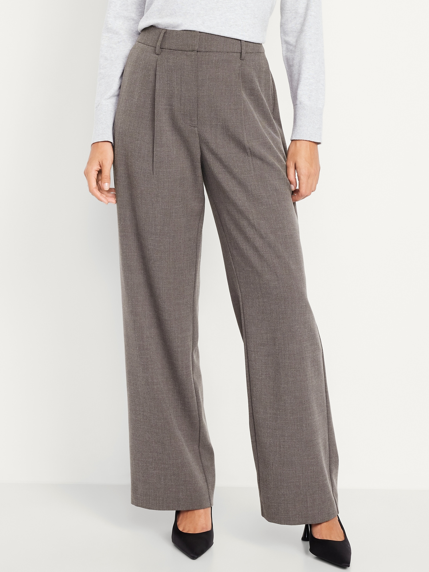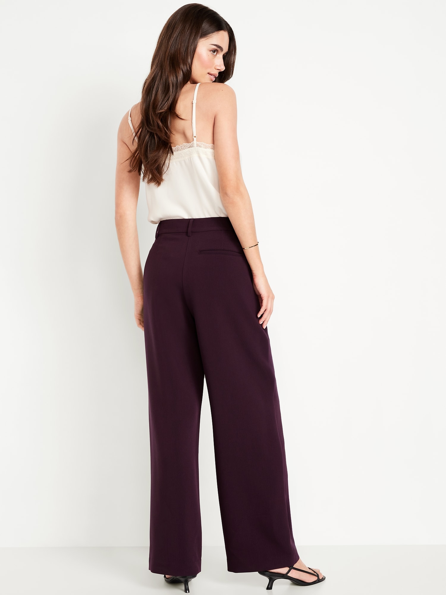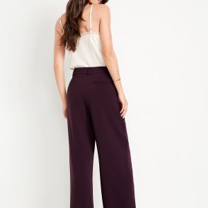 Extra High-Waisted Taylor Wide-Leg Trouser Pants: Tailored pleats. Loose fit. Don’t do 9-5 (or 5-9) without them.adjustable waistband, belt loops, hook-and-bar closure, zip fly, hip pockets, functional back welt pocket, wide leg, #791424
