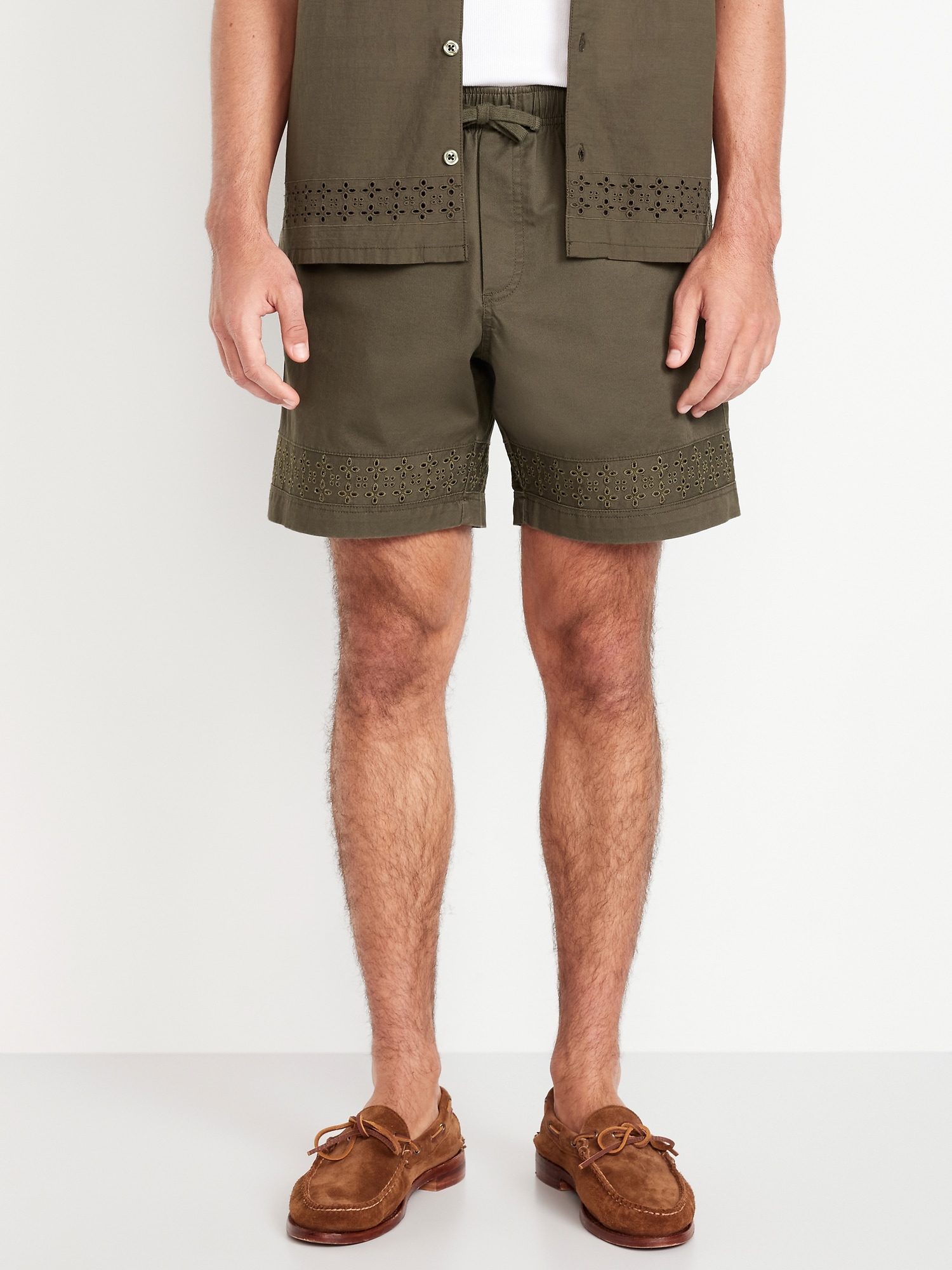 Eyelet-Hem Twill Shorts — 7-inch inseam