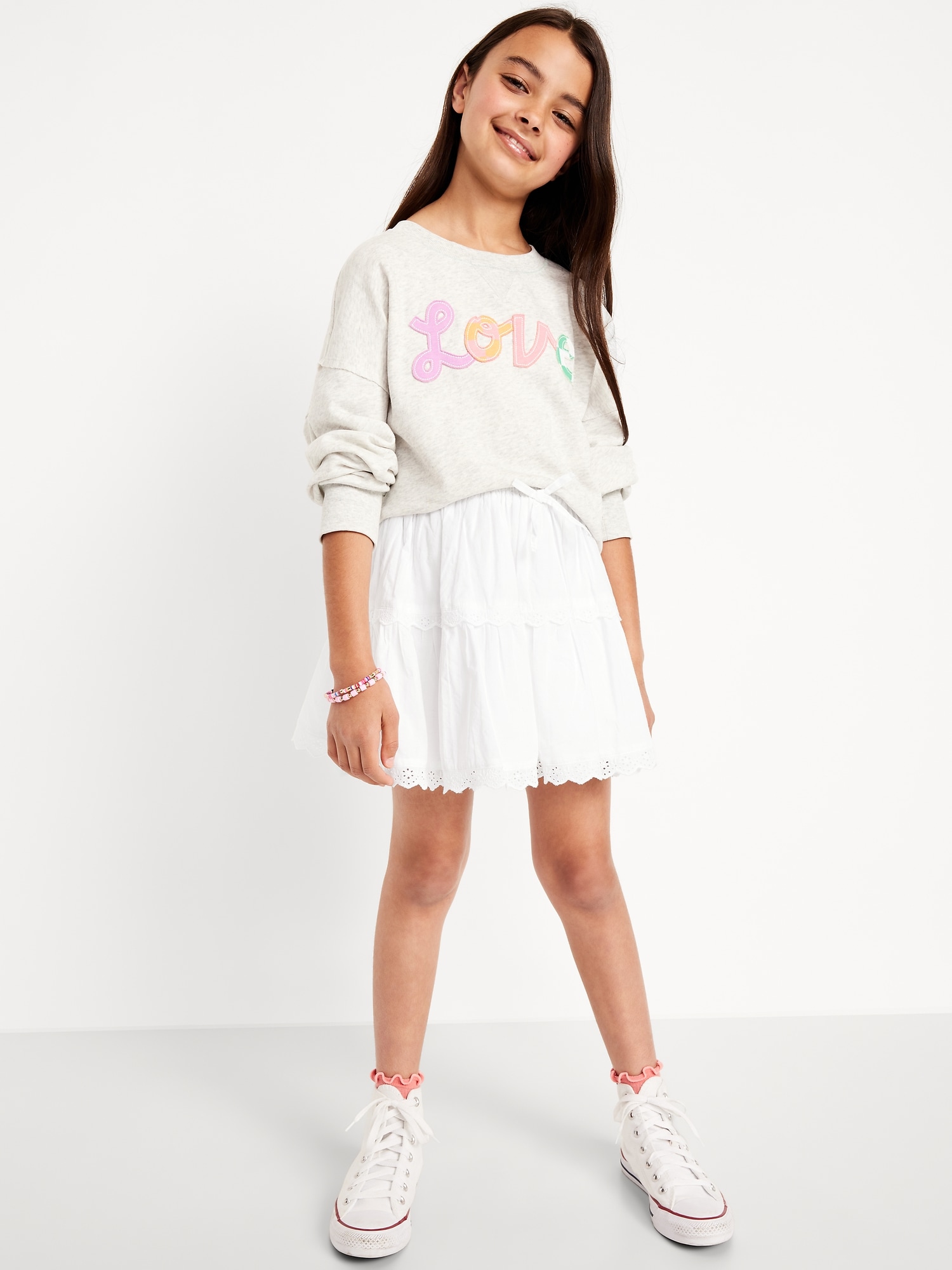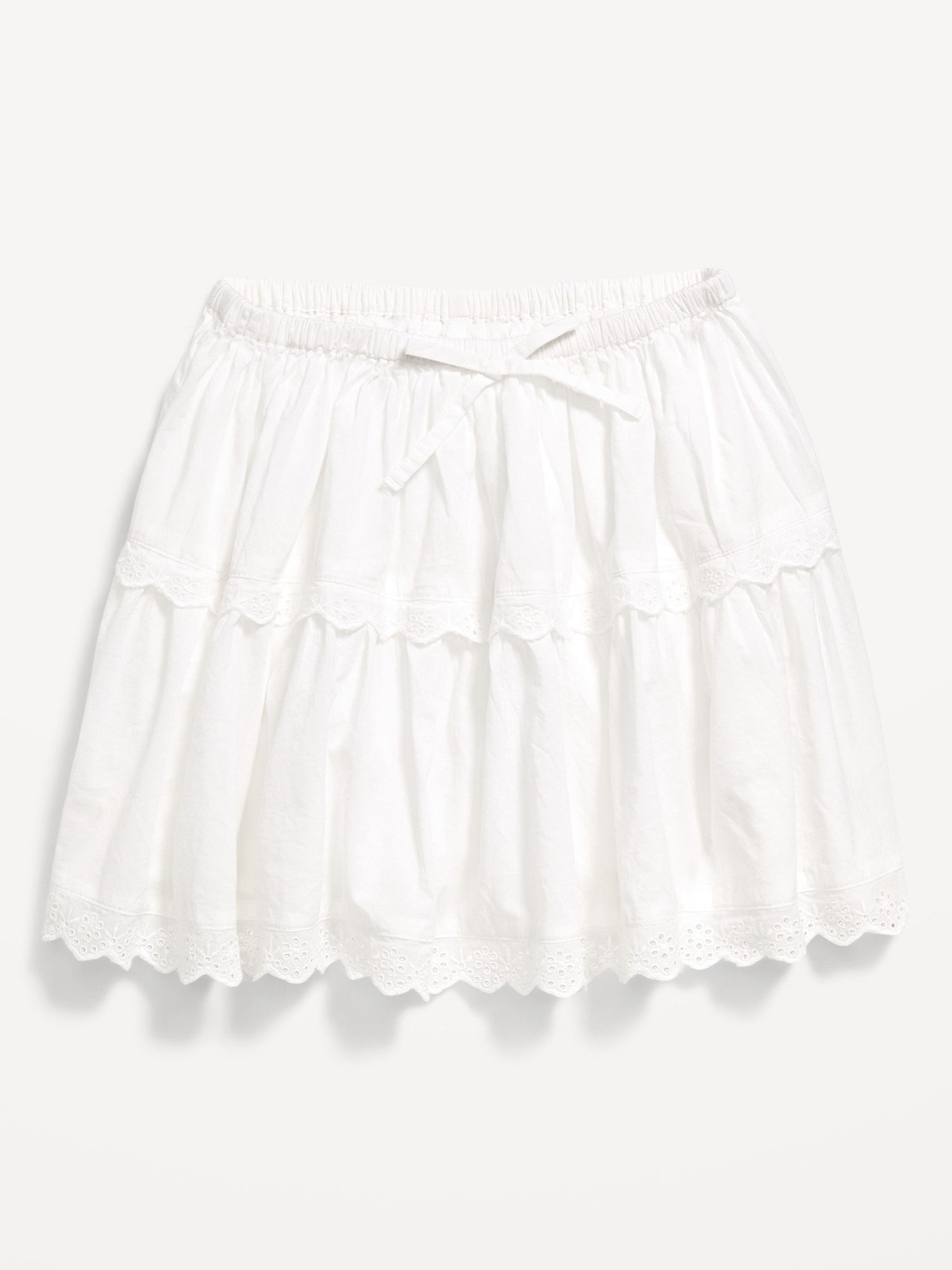 Eyelet Trim Tiered Skirt for Girls: elasticized waistband, decorative bow, eyelet trim, tiered, #766630