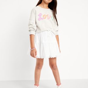 Eyelet Trim Tiered Skirt for Girls