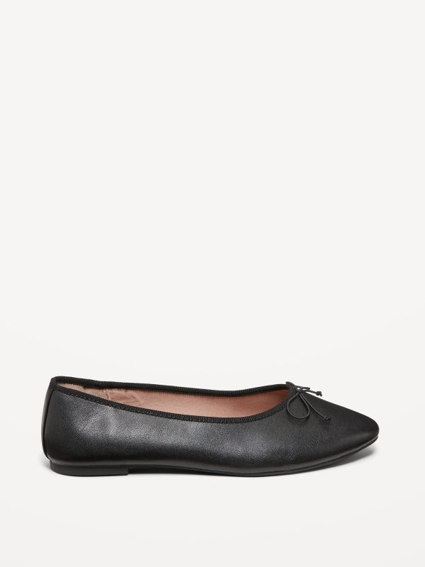 Faux-Leather Ballet Flats: almond-shaped toe, bow-tie accent, firm foot bed, textured outsole, #663674