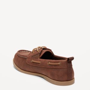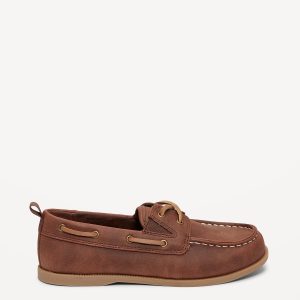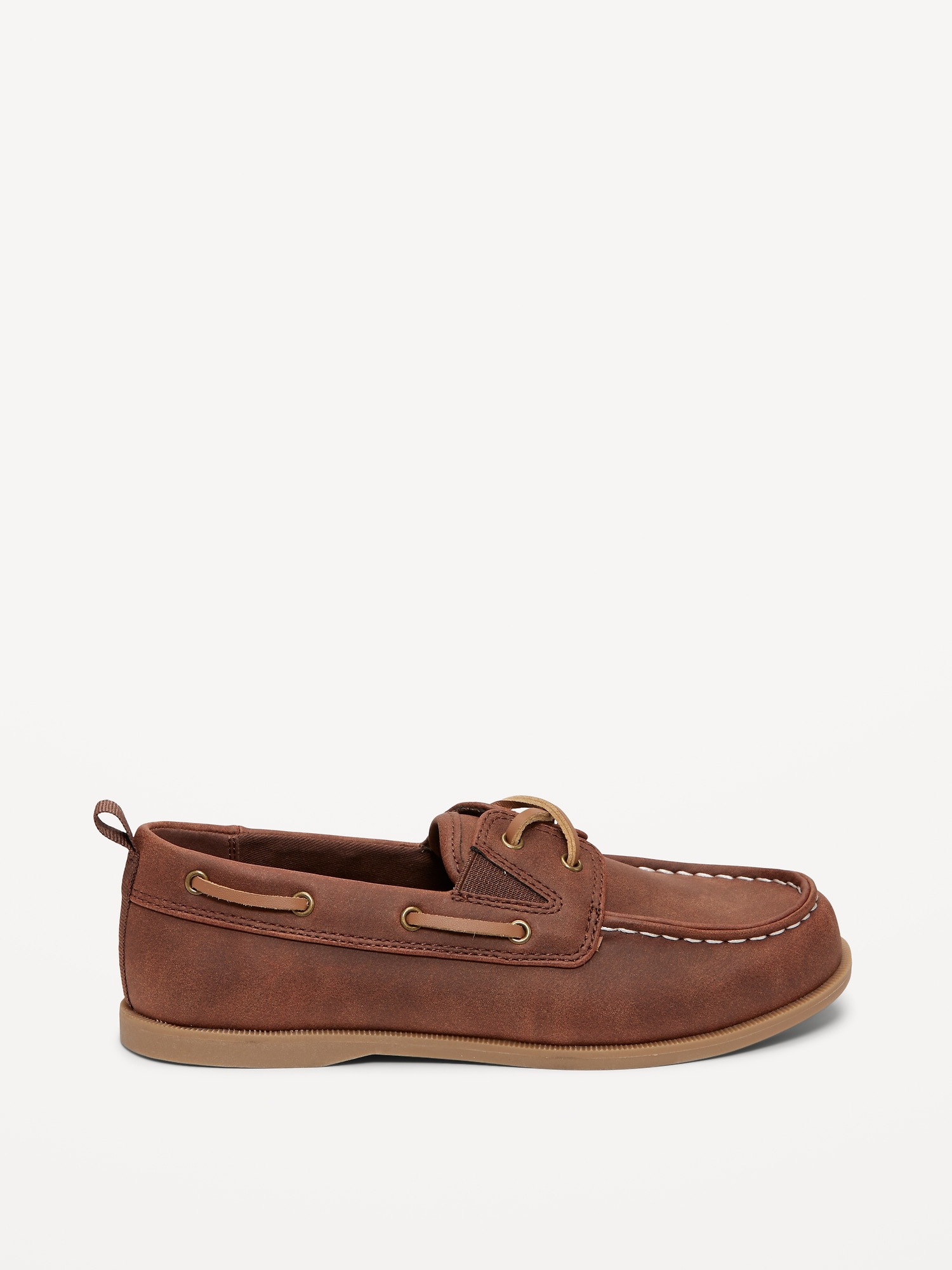 Faux-Leather Boat Shoes for Boys: lace-up front, boat-shoe side lace details, cushioned foot bed, rubber midsole, textured synthetic outsole, #761666
