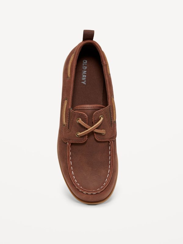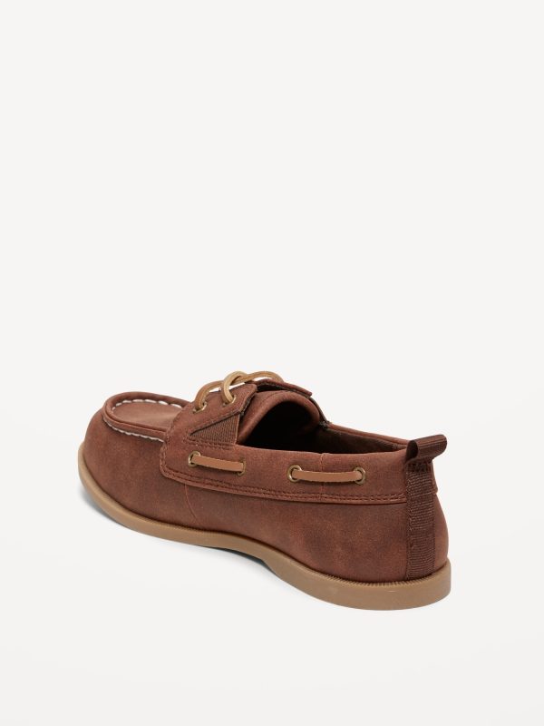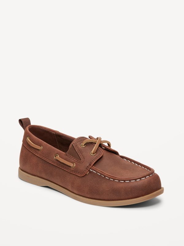 Faux-Leather Boat Shoes for Boys: lace-up front, boat-shoe side lace details, cushioned foot bed, rubber midsole, textured synthetic outsole, #761666