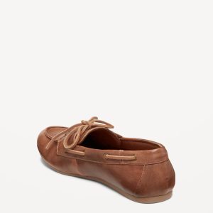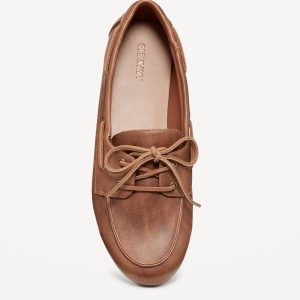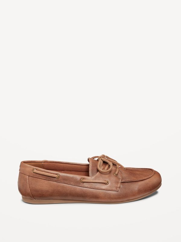 Faux-Leather Boat Shoes for Women: faux leather upper, lace-up detail, cushioned foot bed, slip-on style, #750797