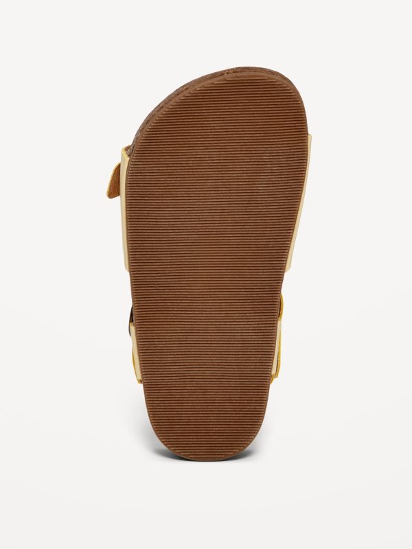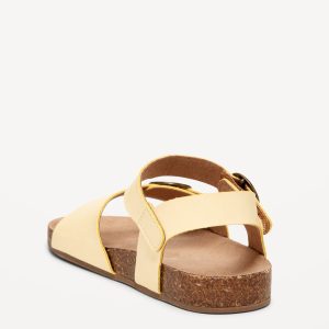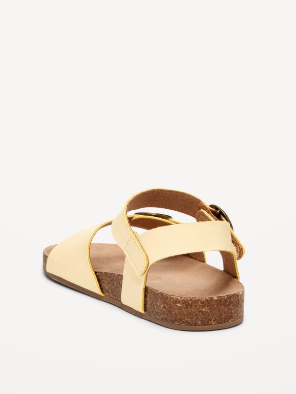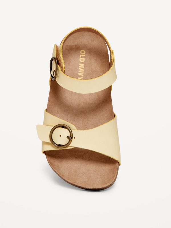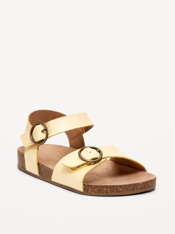 Faux-Leather Buckled Strap Sandals for Toddler Girls: buckled adhesive secure close ankle strap, double buckled straps across foot, faux-cork midsole, cushioned foot bed, #689190
