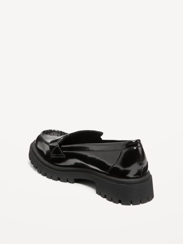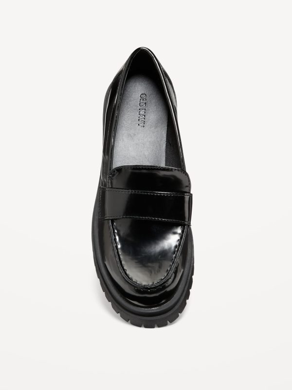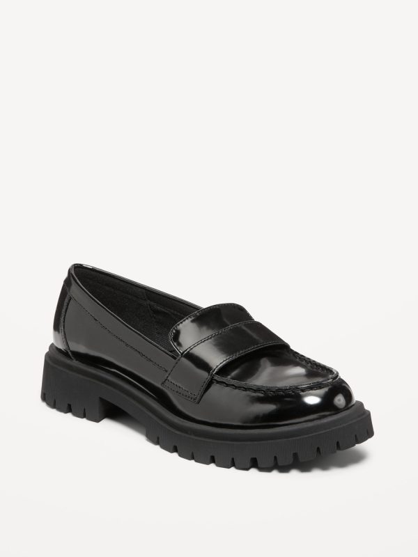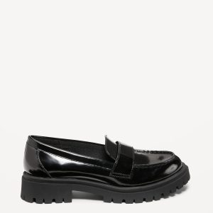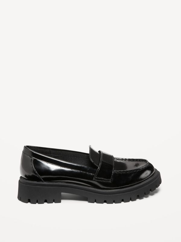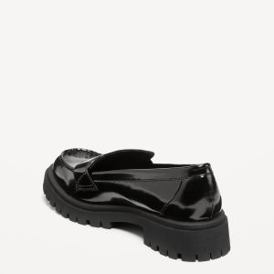 Faux-Leather Chunky Heel Loafers