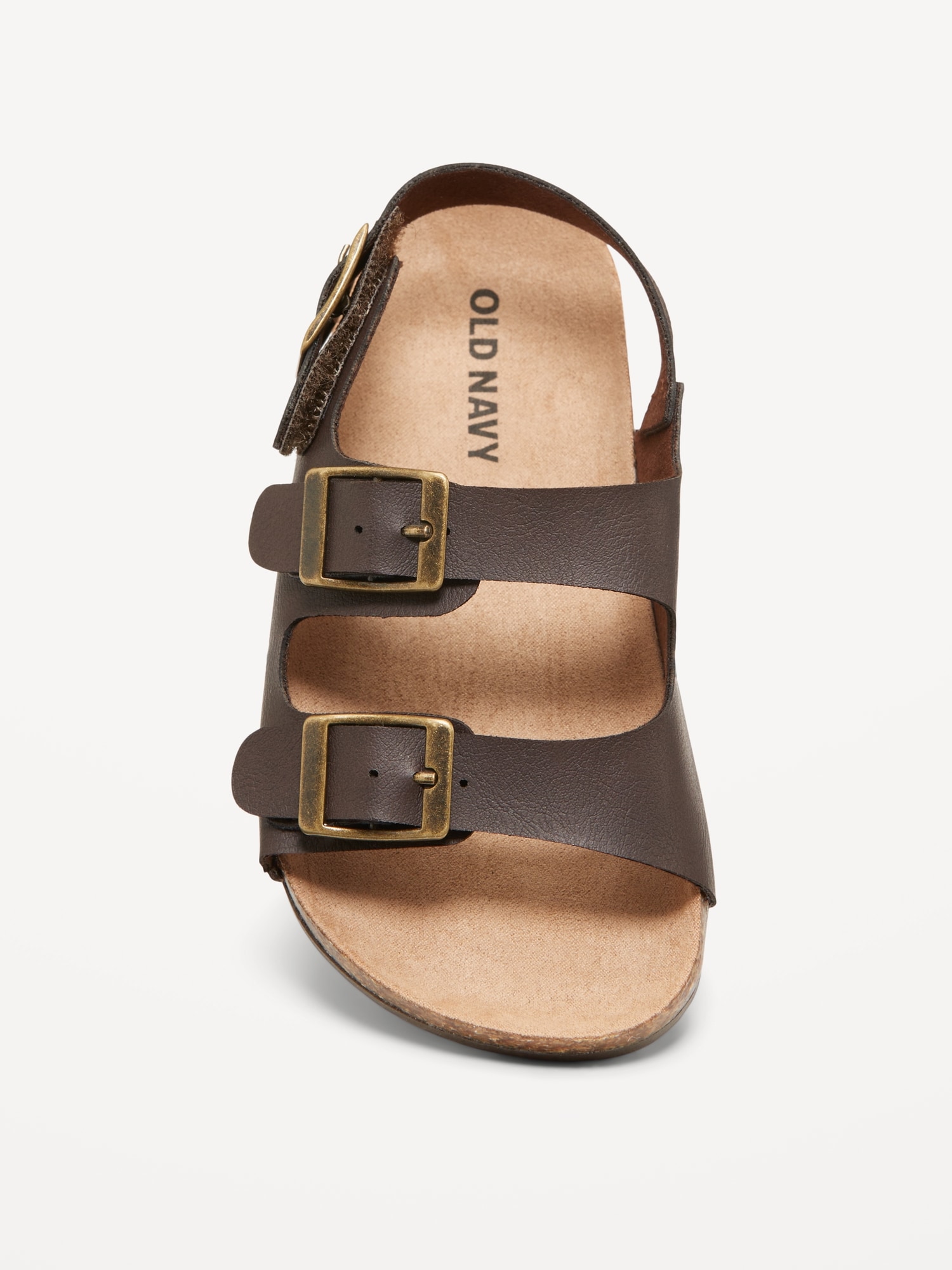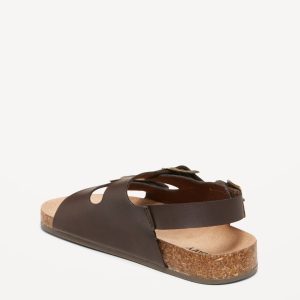 Faux-Leather Double-Strap Sandals for Toddler Boys: buckled adhesive secure close ankle strap, double buckled straps across foot, faux-cork midsole, cushioned foot bed, #689190