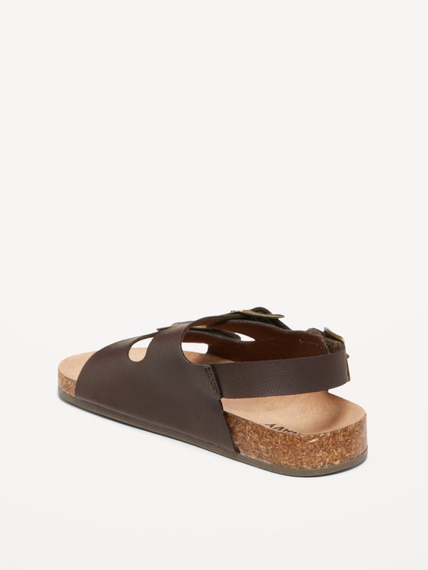 Faux-Leather Double-Strap Sandals for Toddler Boys: buckled adhesive secure close ankle strap, double buckled straps across foot, faux-cork midsole, cushioned foot bed, #689190
