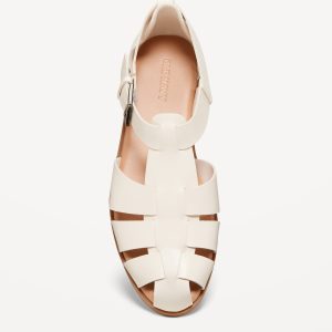 Faux-Leather Fisherman Sandals: faux-leather upper, buckle closure at ankle, cushioned foot bed, #663903