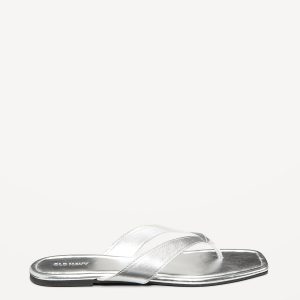 Faux-Leather Flip Flop for Women: faux leather upper, square toe, firm foot bed, slide-on style, #766739