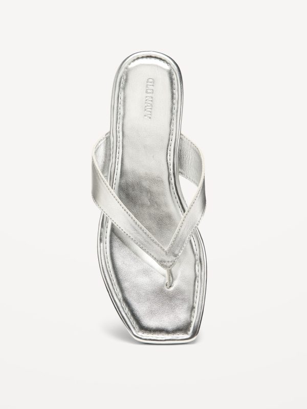 Faux-Leather Flip Flop for Women: faux leather upper, square toe, firm foot bed, slide-on style, #766739