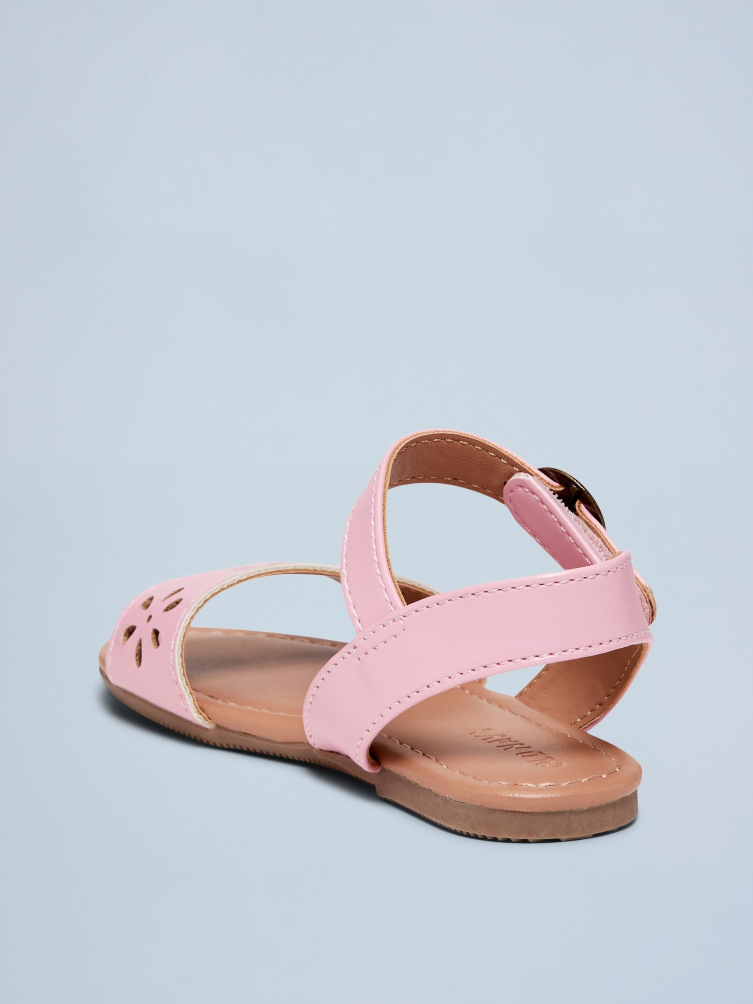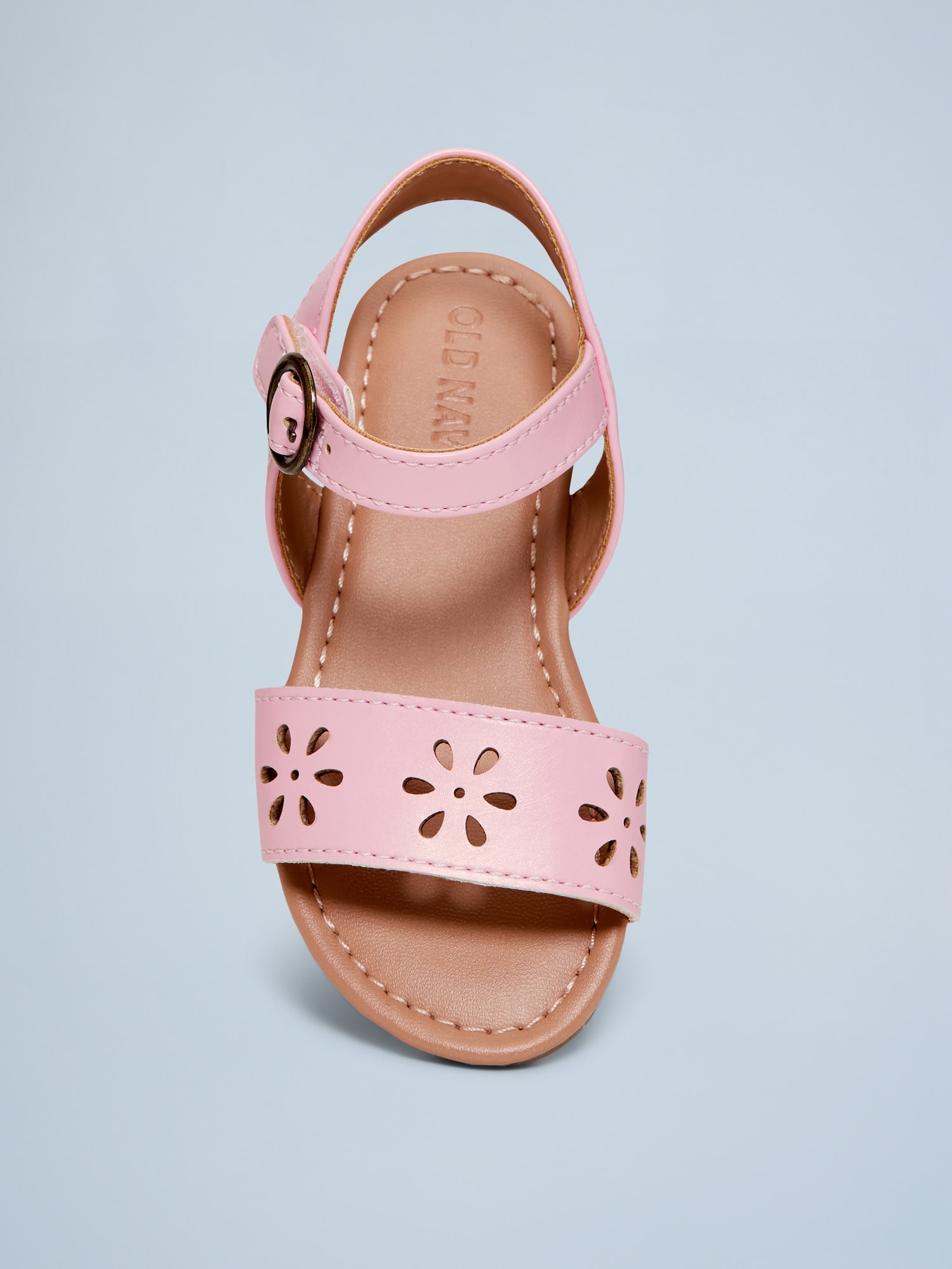 Faux-Leather Perforated Sandals for Toddler Girls: buckled adhesive secure close ankle strap, cushioned foot bed, perforated pattern across foot, open toe, #688770