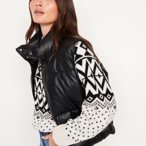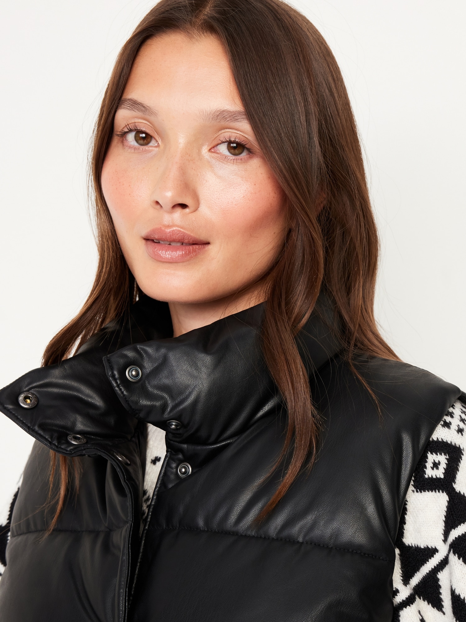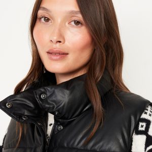 Faux-Leather Puffer Vest