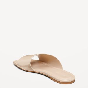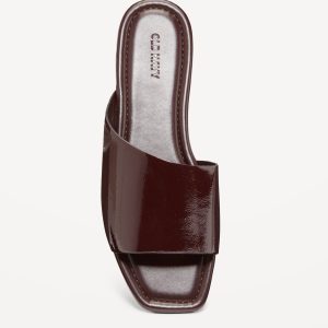 Faux-Leather Slide Sandals for Women: faux leather upper, square toe, cushioned foot bed, slide-on style, #766743