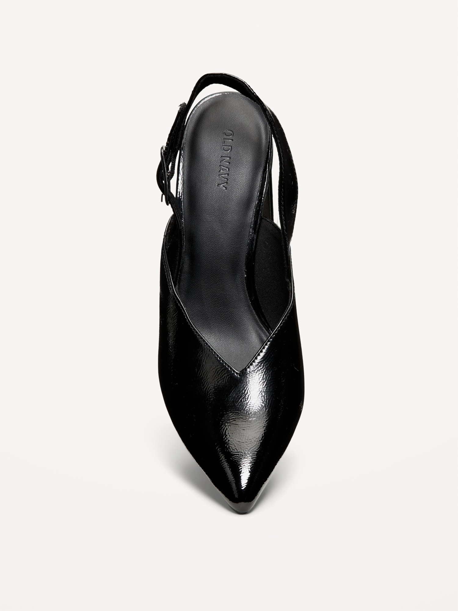 Faux-Leather Slingback Heels for Women: pointed toe, wide buckled ankle strap, block heel, #788065