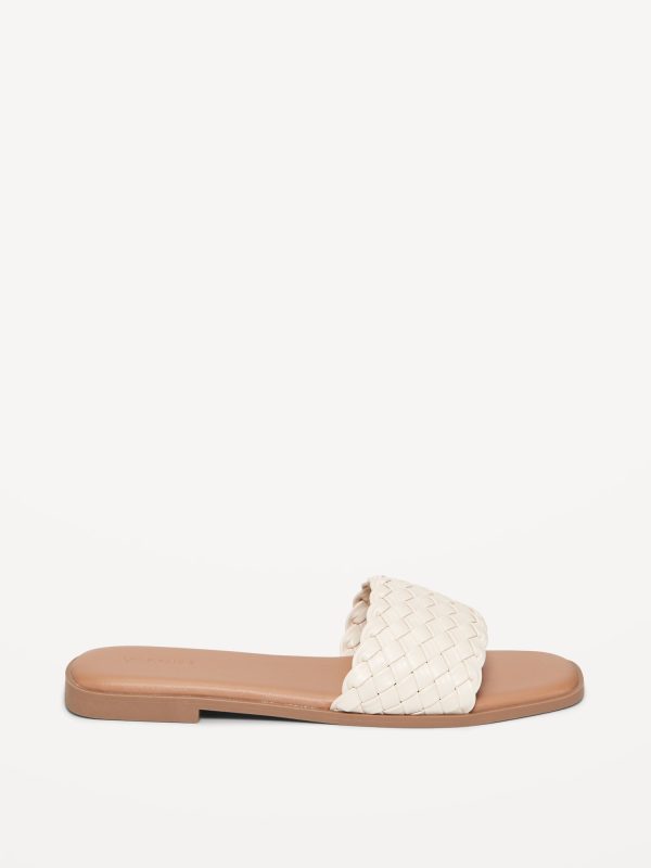 Faux-Leather Woven Slide Sandals