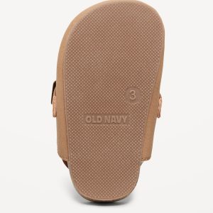Faux-Suede Buckled Strap Sandals for Baby: adhesive secure close ankle strap, buckled strap across foot, cork midsole and textured outsole, #800506