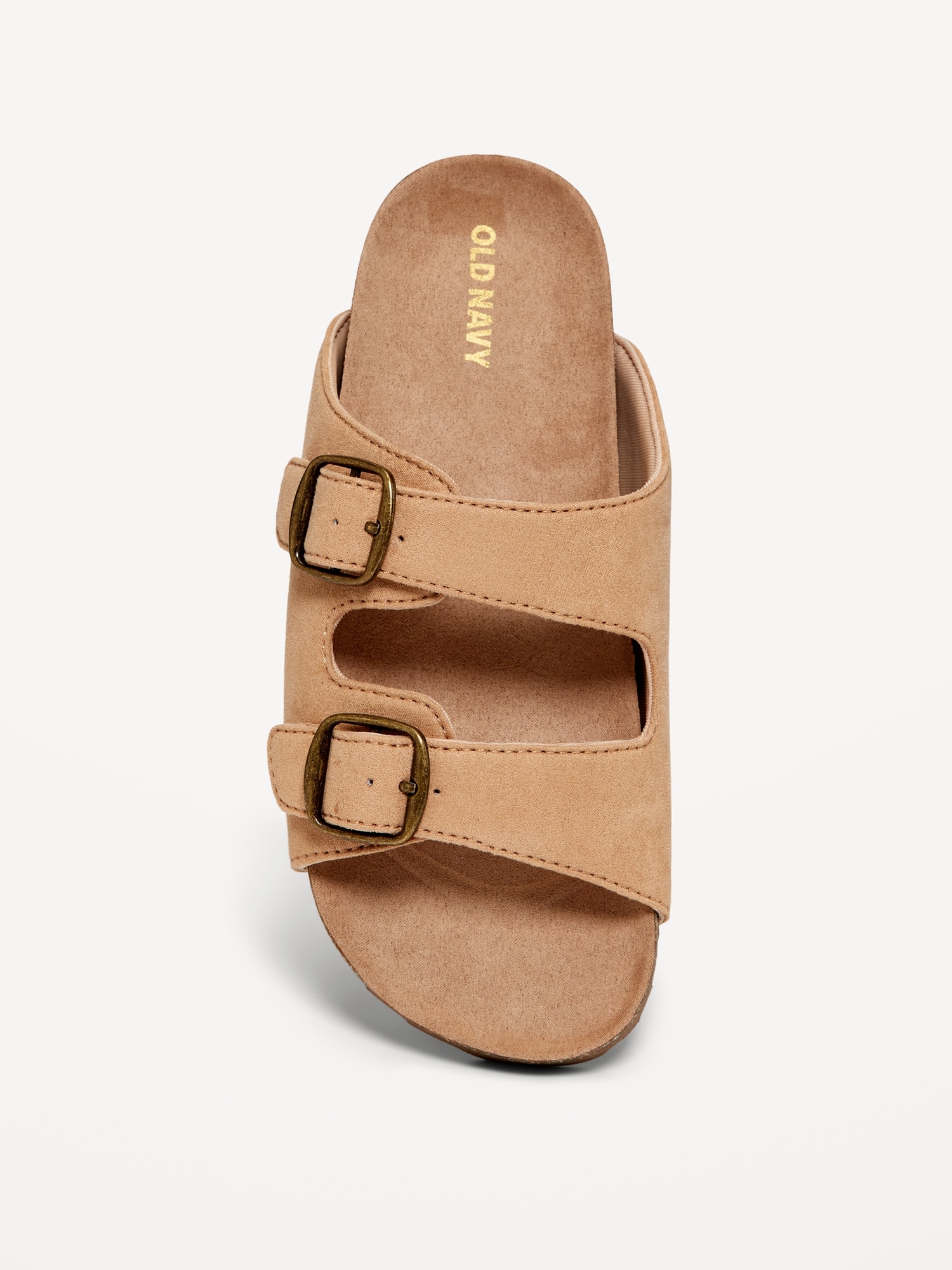 Faux-Suede Buckled Strap Sandals for Girls: double buckle straps, cushioned foot bed, faux-cork midsole, textured woven crochet-like pattern along straps, #693401