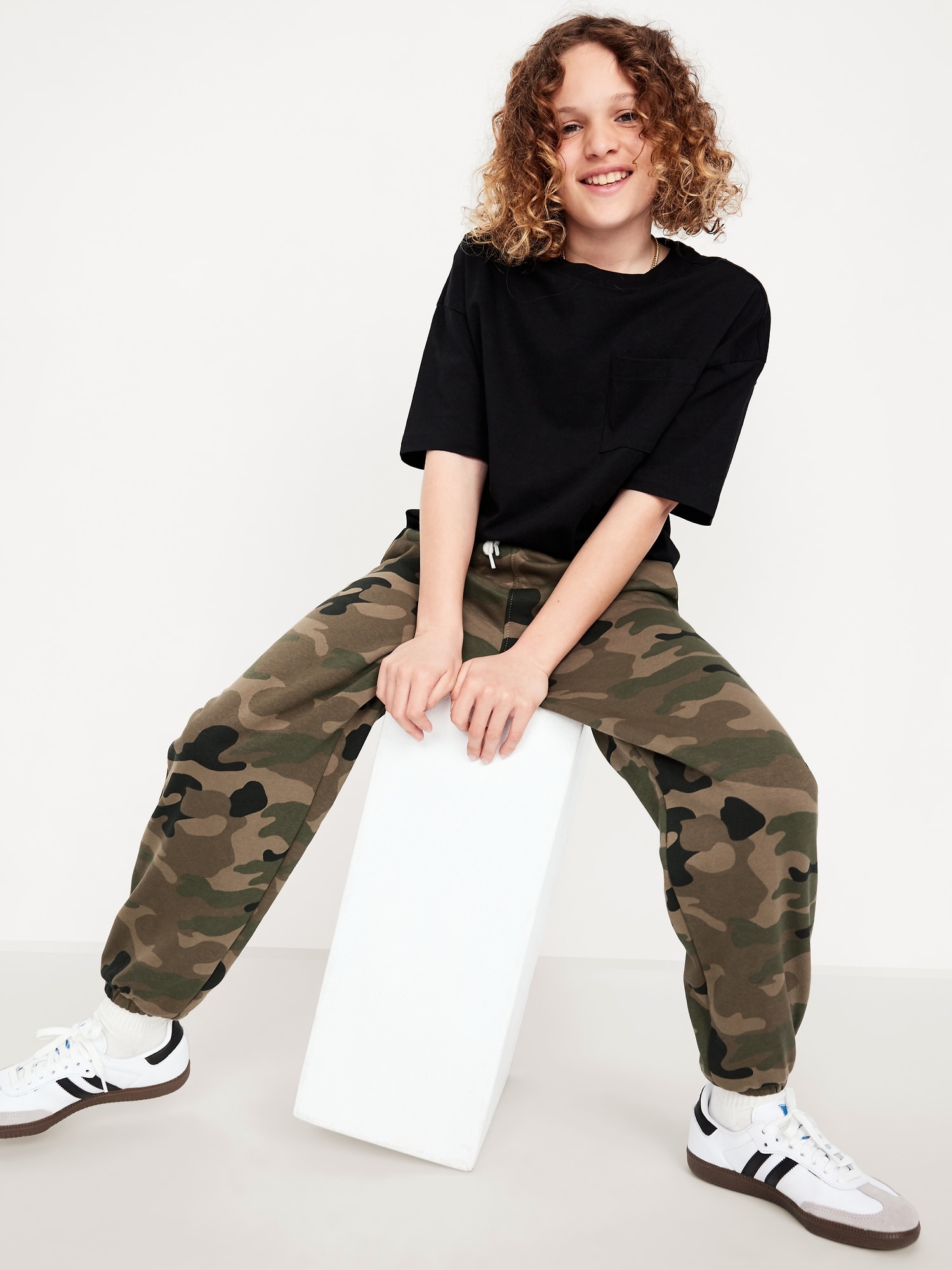 Favorite Fleece Baggy Jogger Sweatpants for Boys: elasticized waist, functional drawstring, on-seam welt pockets, snap-button cargo pockets, cinched leg cuffs, #564944