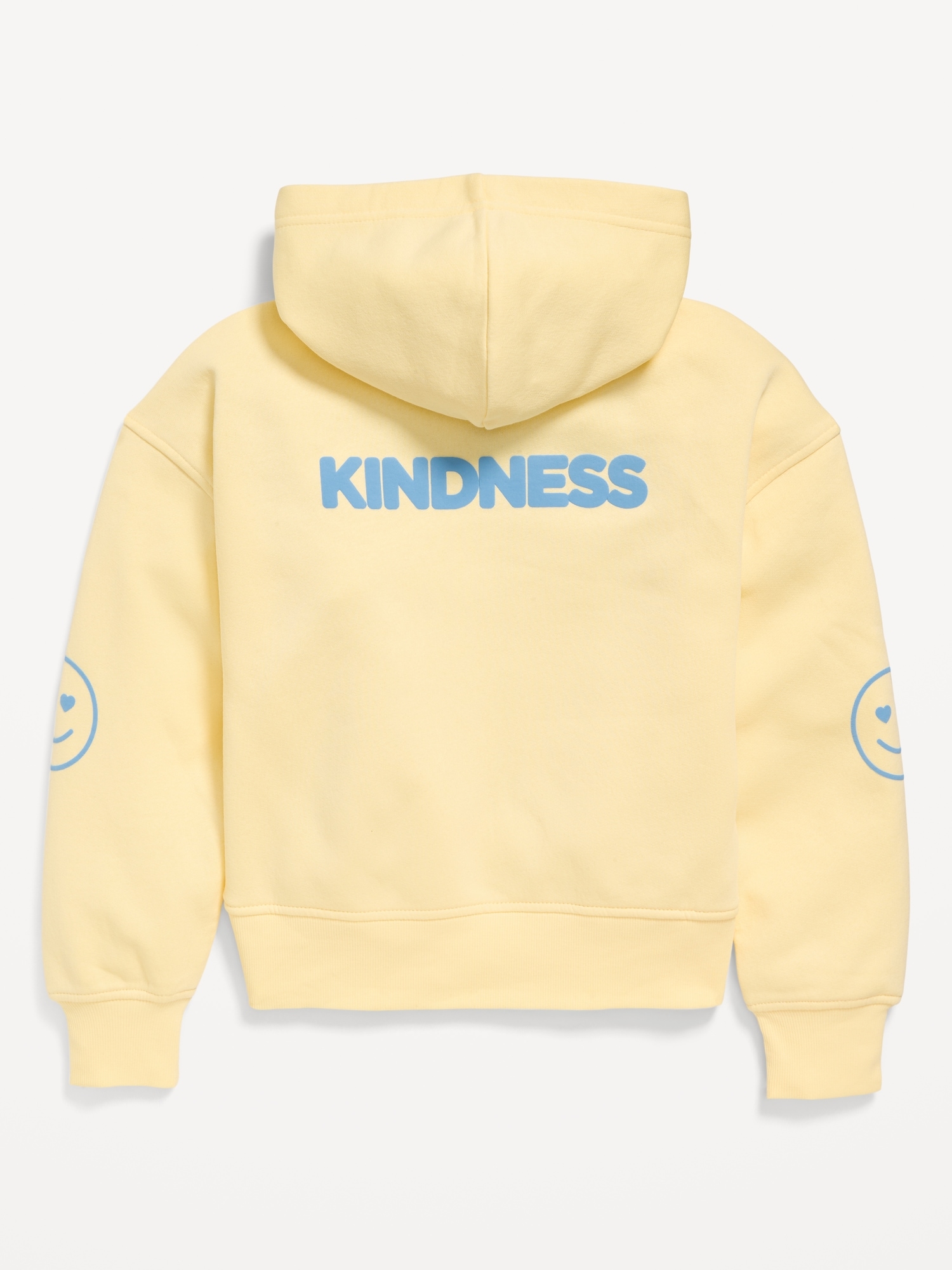 Favorite Fleece Printed Zip-Front Hoodie for Girls: built-in hood, long wide sleeves, drop shoulders, full length zipper, banded hem, all-over print or graphic at front, #787762