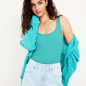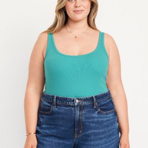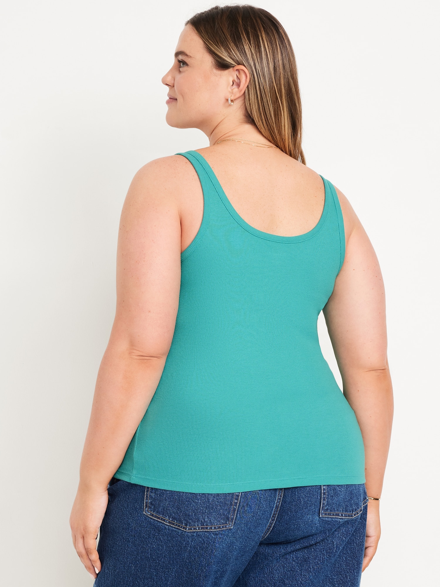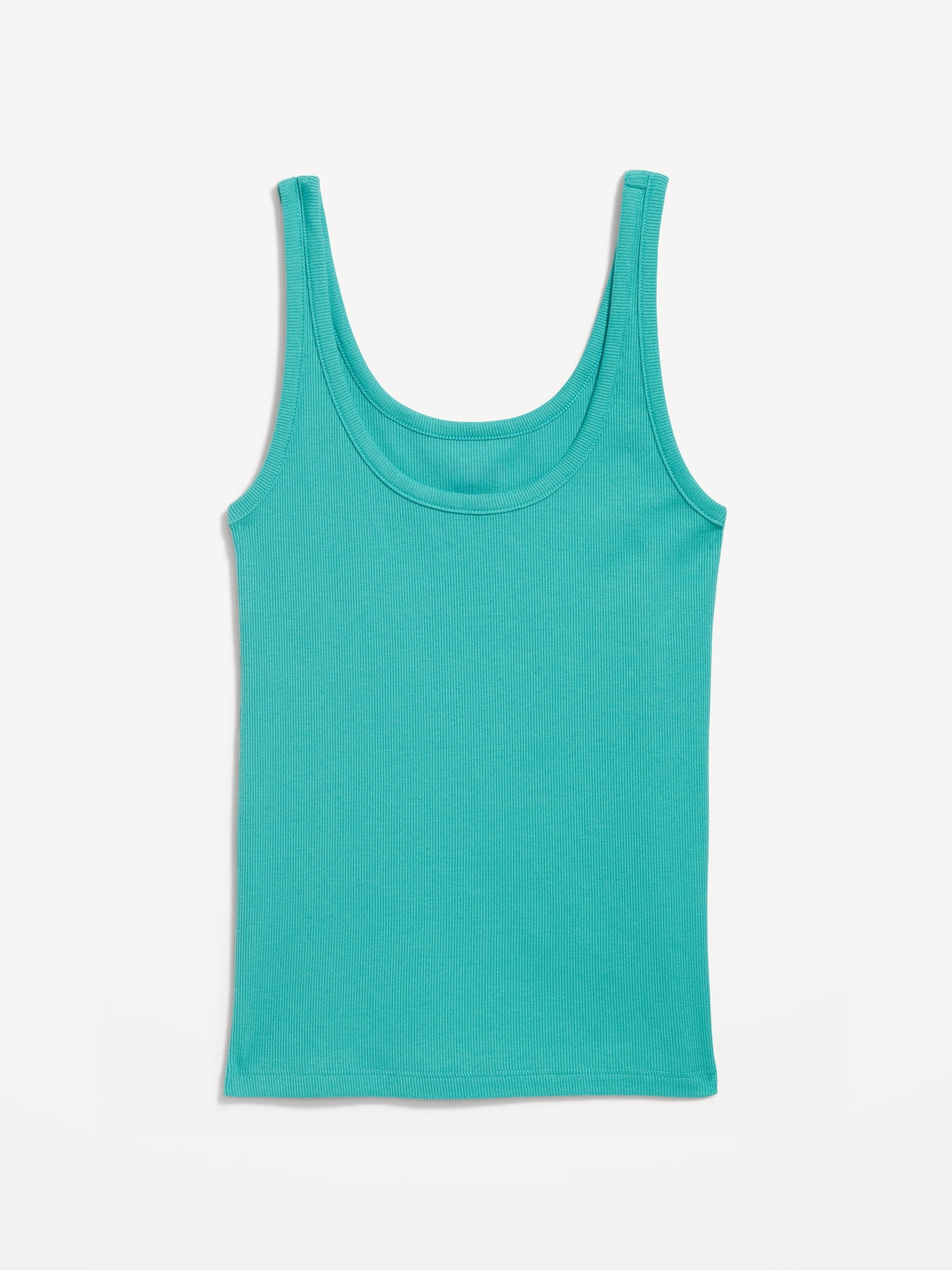 First-Layer Ribbed Scoop-Neck Tank Top: scoop neck, wide straps, #619927