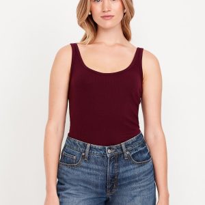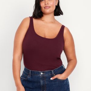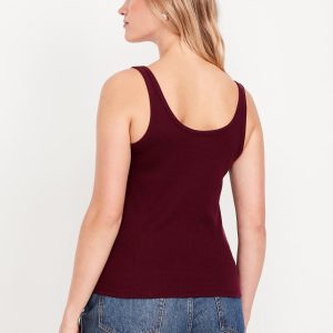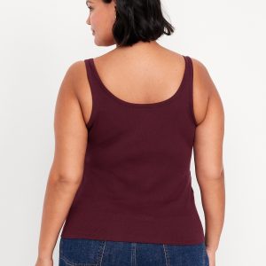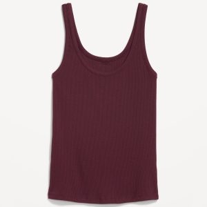 First-Layer Ribbed Scoop-Neck Tank Top: scoop neck, wide straps, #619927