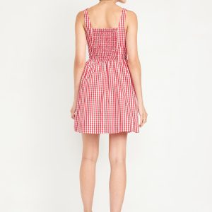 Fit & Flare Cami Mini Dress: sweetheart neckline, wide straps, smocked back, seamed waist, side-seam pockets, princess seams, mini length, #766921