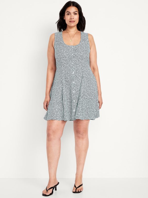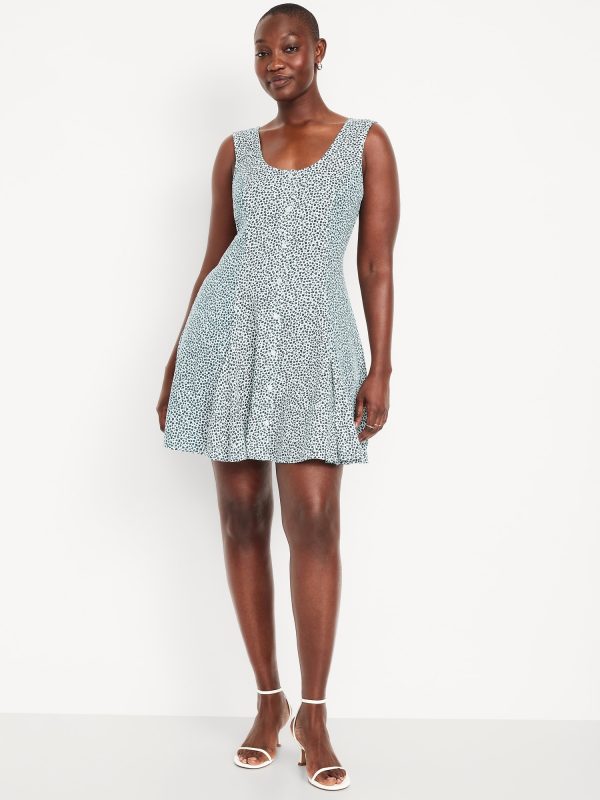 Fit & Flare Crepe Button-Front Mini Dress: scoop neck, wide straps, tie-back waist, full button front, princess seams, #798239