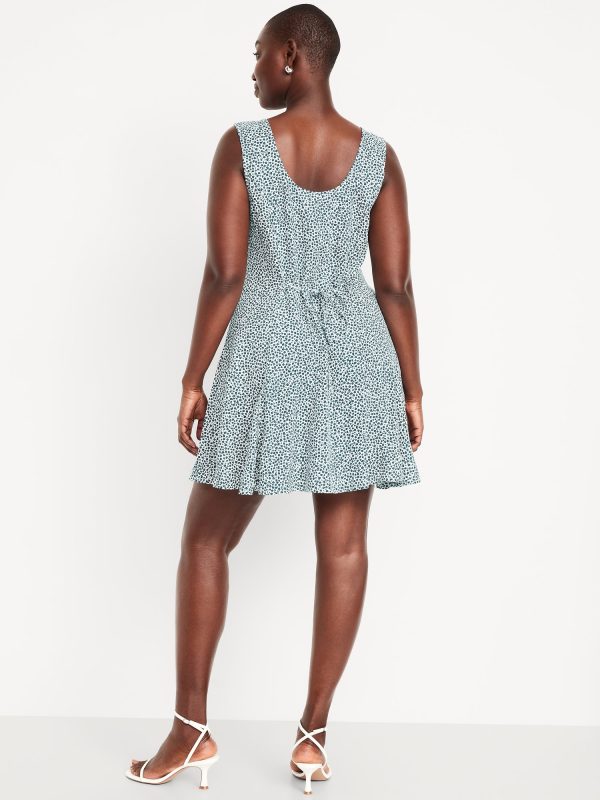 Fit & Flare Crepe Button-Front Mini Dress: scoop neck, wide straps, tie-back waist, full button front, princess seams, #798239