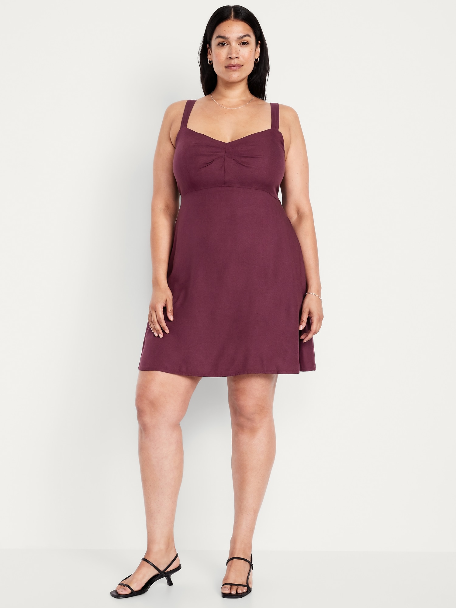 Fit & Flare Crepe Mini Dress: Our strappy fit and flare that’s an instant classic.sweetheart neckline, wide adjustable straps, on-seam pockets, smocked back, seamed waist, #798221