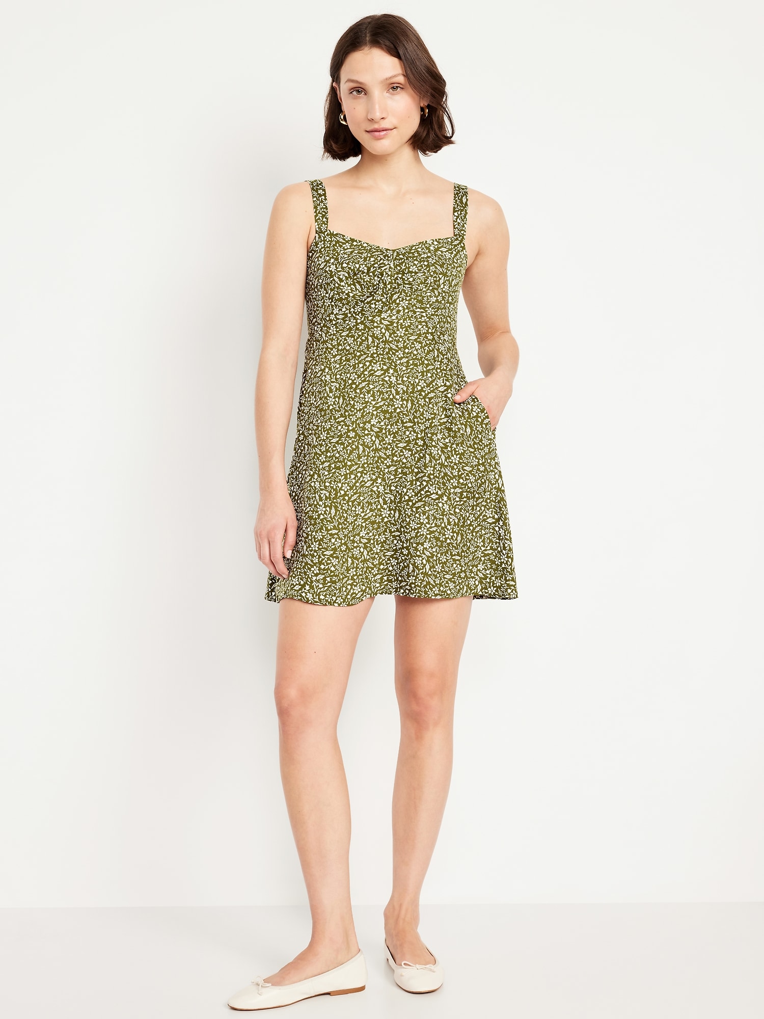 Fit & Flare Crepe Mini Dress: Our strappy fit and flare that’s an instant classic.sweetheart neckline, wide adjustable straps, on-seam pockets, smocked back, seamed waist, #798221
