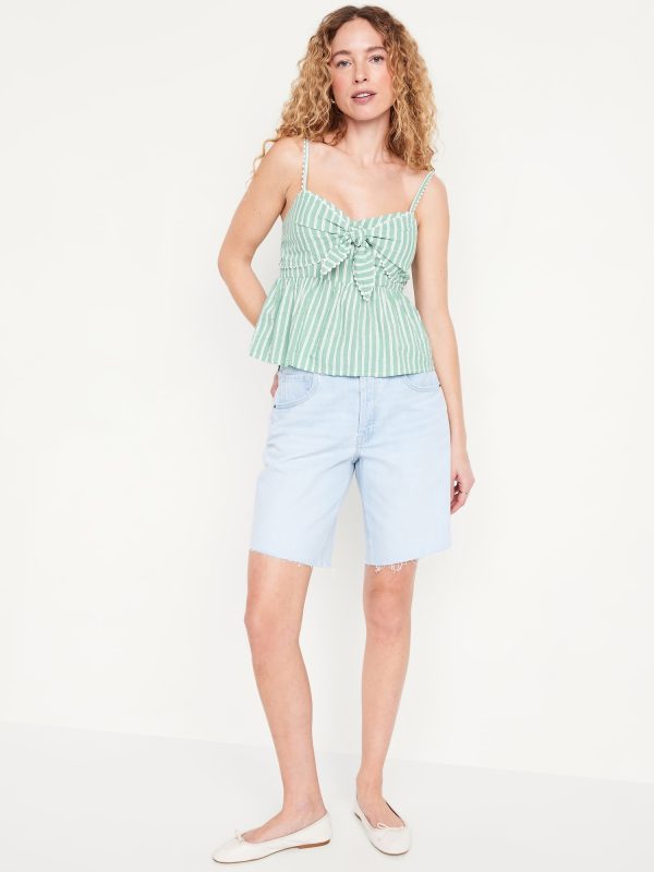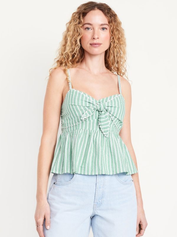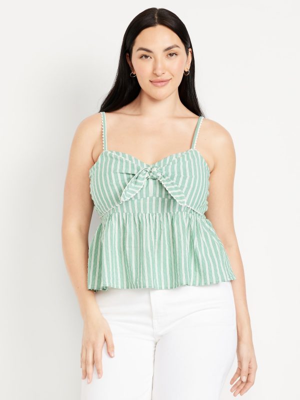 Fit & Flare Seersucker Peplum Top: knotted sweetheart neckline, adjustable straps, smocked back, peplum hem, floral and fruit print, #764190