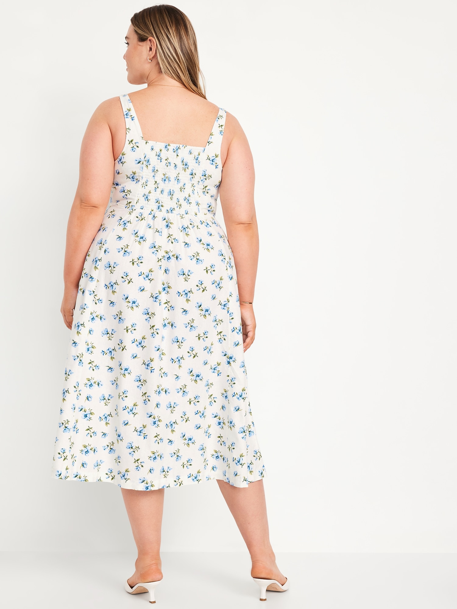 Fit & Flare Sleeveless Linen-Blend Midi Dress