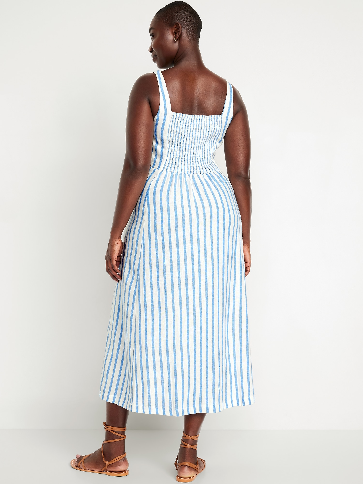 Fit & Flare Sleeveless Linen-Blend Midi Dress
