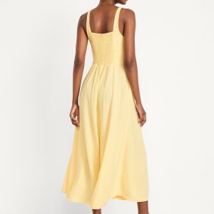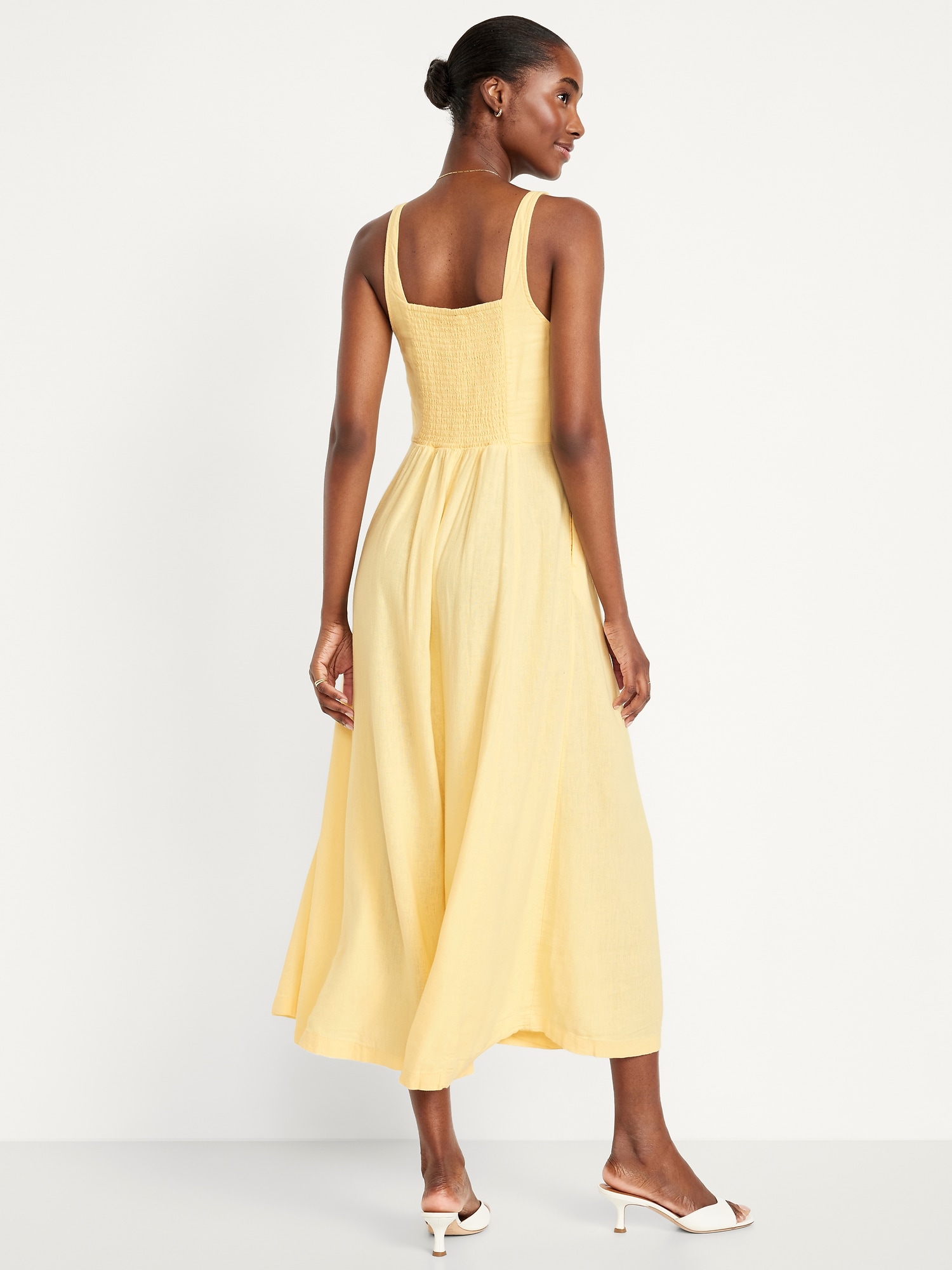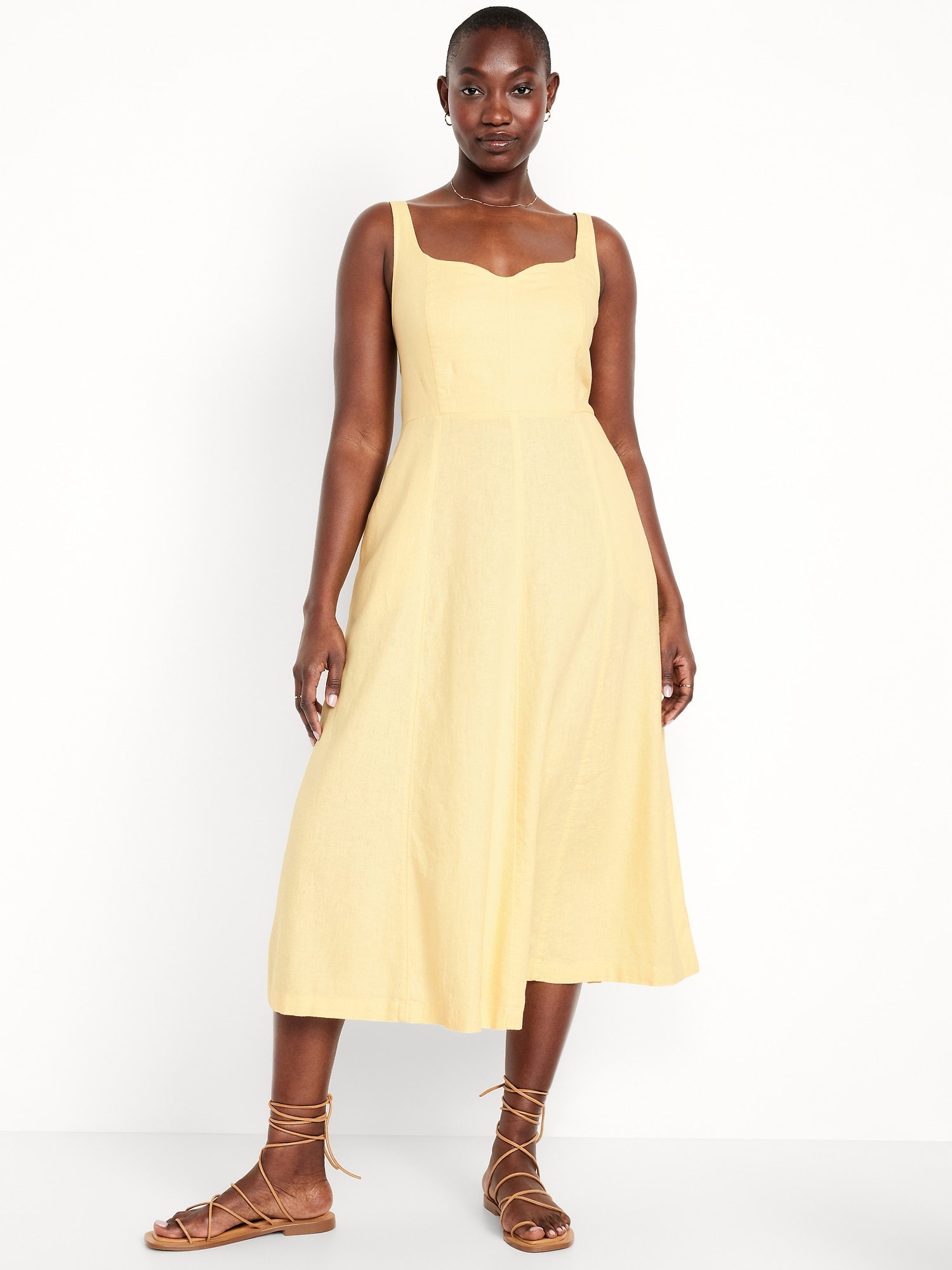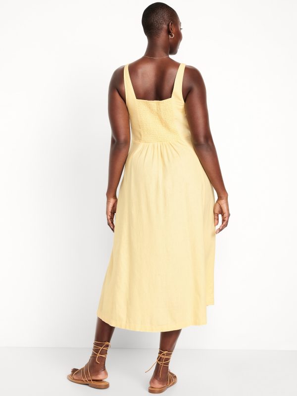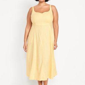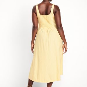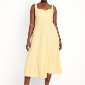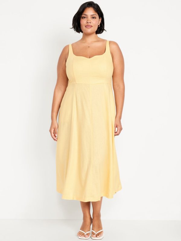Fit & Flare Sleeveless Linen-Blend Midi Dress