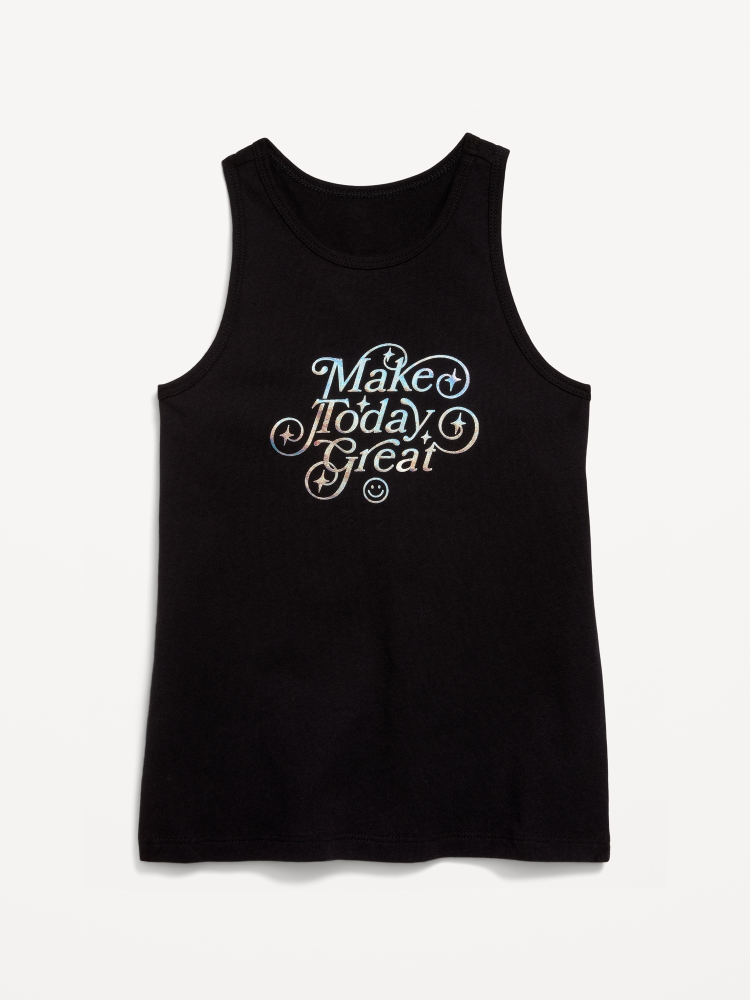 Fitted Graphic Back-Cutout Tank Top for Girls: scoop neck, sleeveless, graphic at front, racerback, keyhole cutout at back, #763754