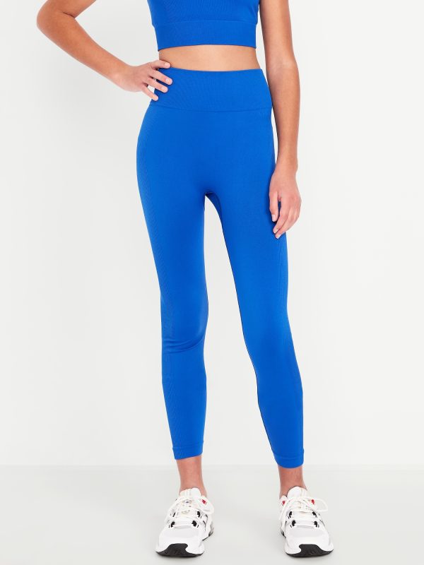 Fitted High-Waisted 7/8-Length Seamless Performance Leggings for Girls