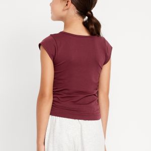 Fitted Ruched Seamless Performance Top for Girls: square neckline, short sleeves, ruching at sides, #763220