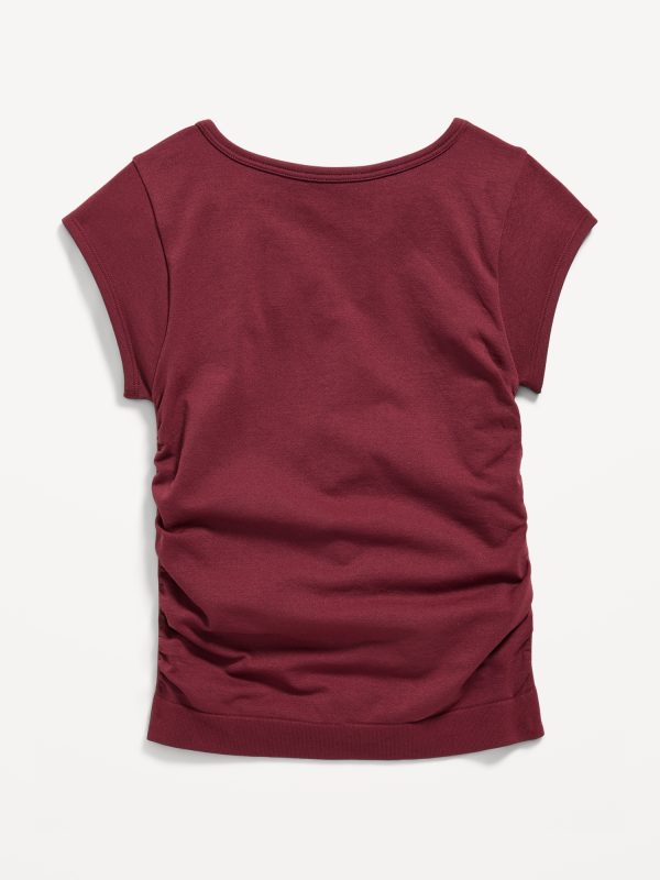 Fitted Ruched Seamless Performance Top for Girls: square neckline, short sleeves, ruching at sides, #763220