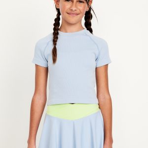 Fitted Seamless Performance Top for Girls: crew neck, short sleeves, #694734