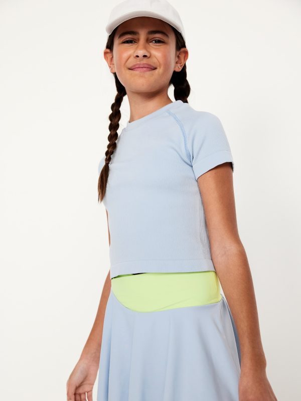 Fitted Seamless Performance Top for Girls: crew neck, short sleeves, #694734