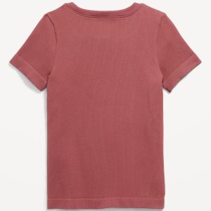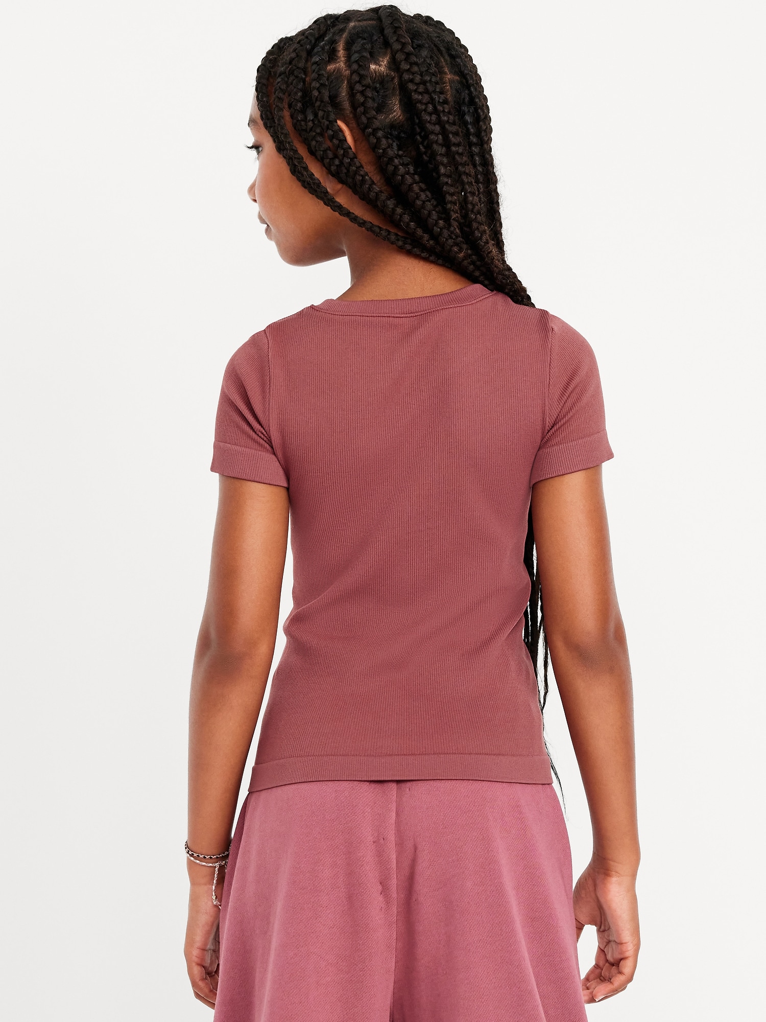 Fitted Seamless Ribbed Performance Top for Girls: crew neck, short sleeves, #802735