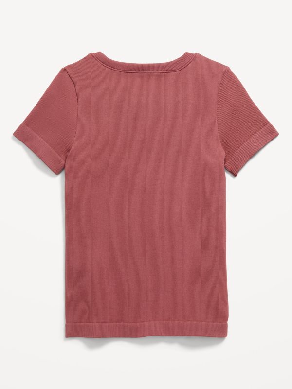 Fitted Seamless Ribbed Performance Top for Girls: crew neck, short sleeves, #802735