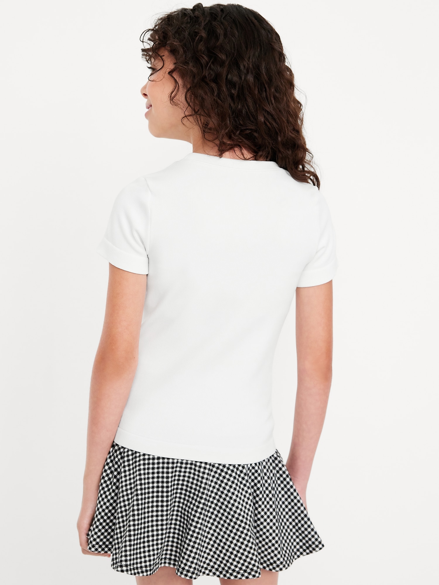 Fitted Seamless Ribbed Performance Top for Girls: crew neck, short sleeves, #802735