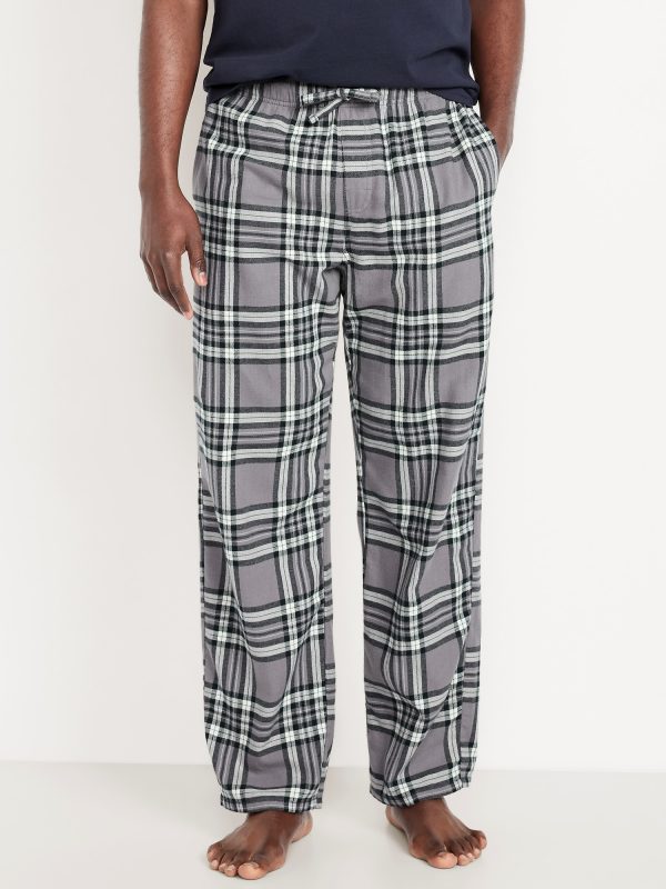 Flannel Pajama Pants for Men: elastic-drawstring waistband, on-seam pockets, print varies, #803268