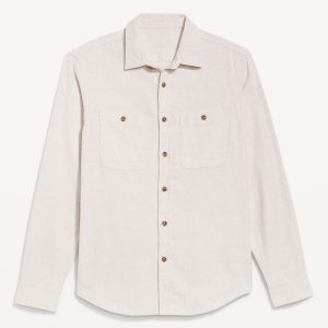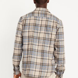 Flannel Pocket Shirt: spread collar, long sleeves with buttoned cuffs, button-patch chest pockets, full-button front, rounded hem, #801296