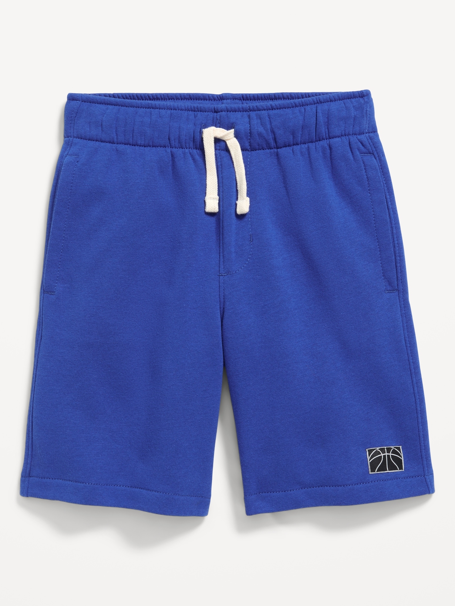 Fleece Jogger Shorts for Boys (At Knee): elasticized waistband, interior drawstring, on-seam welt pockets, #685948